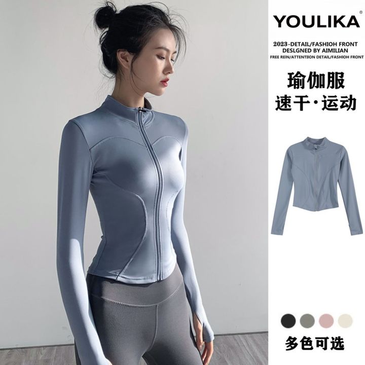 YOULIKA Fitness Jacket Women's Spring and Summer Tight Quick-Drying Top Long Sleeve Sports Pilates Training Yoga Clothes