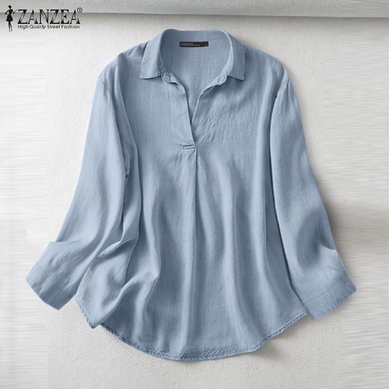 ZANZEA%20Women's%20Shirts%20Vintage%20Casual%20Lapel%20Long%20Sleeve%20Button%20Cuffs%20Solid%20Blouses%20Top%20-%20Image%201