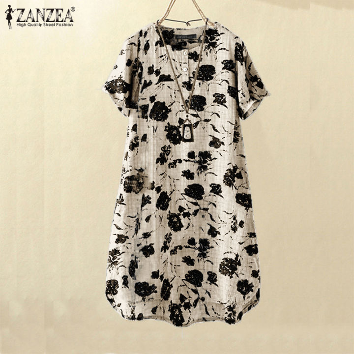 ZANZEA Women's Vintage Bohemian Floral Printed Shift Dresses Causal Short Sleeve O-Neck Dress #3