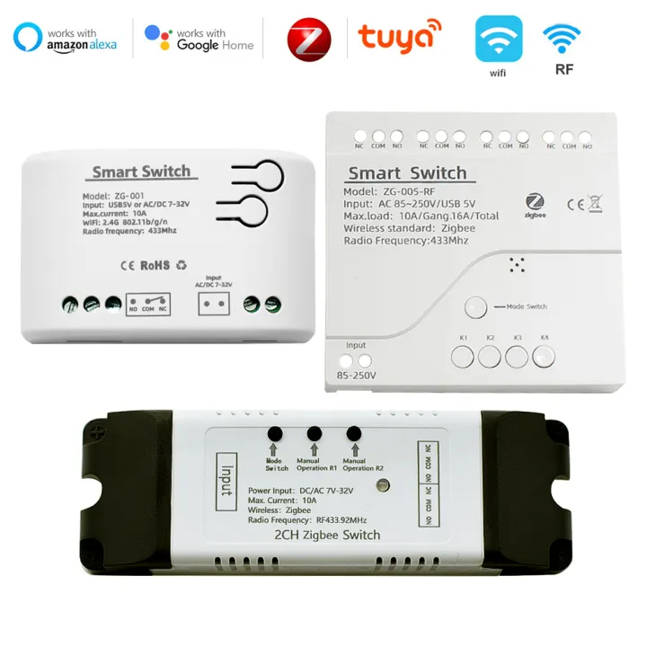 Zigbee Smart Relay Switch Module 1/2/4 Channel AC/DC 7-32V 220V USB 5V RF/APP Wireless Remote Control Smart Home Work With Alexa