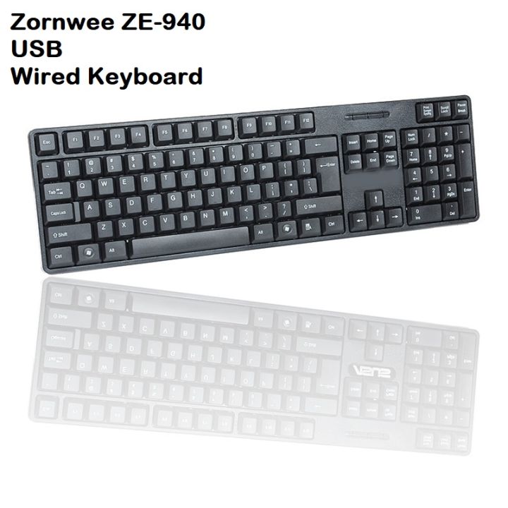 ZORNWEE ZE-940 Wired Keyboard - Fashion - Gaming - Business Keyboard with Multimedia Buttons - Black